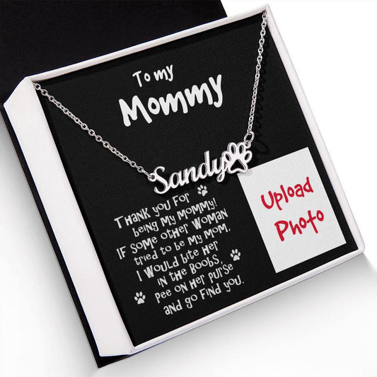 Funny Dog Mom Custom Paw Print Name and Photo Upload Necklace
