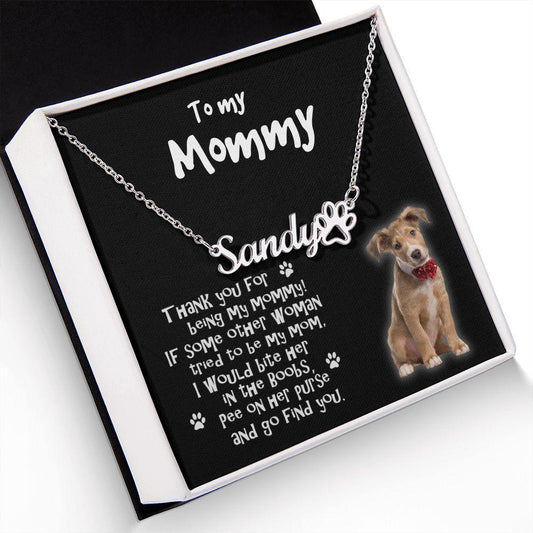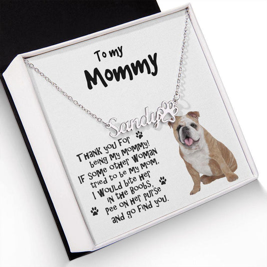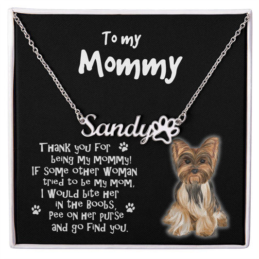Yorkshire Terrier Dog Mom Paw Print Name Necklace
