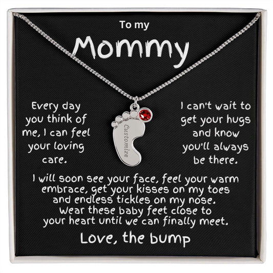 To My Mommy Love the Bump Custom Baby Feet Birthstone Charm Necklace