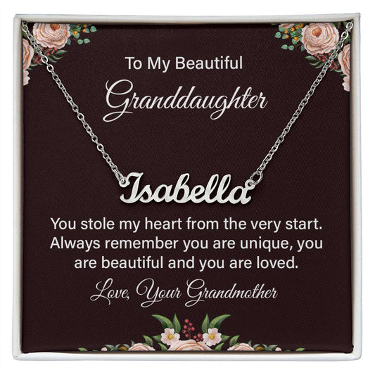 To My Beautiful Granddaughter Personalized Name NecklaceRegular price From $44.95 USDRegular priceUnit price / per$89.95 USDSale price From $44.95 USDSale