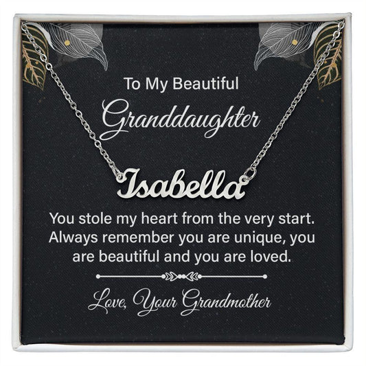 To My Beautiful Granddaughter - You Stole My Heart - Personalized Name NecklaceRegular price From $44.95 USDRegular priceUnit price / per$89.95 USDSale price From $44.95 USDSale