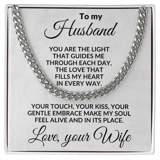 To My Husband - You are the Light - Cuban Chain Necklace with Message Card and Gift Box
