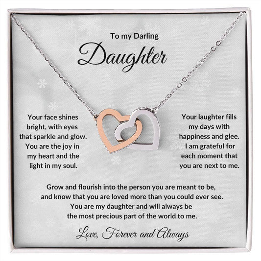 To My Darling Daughter - Love Forever and Always - Interlocking Hearts Necklace with Message card and Gift Box