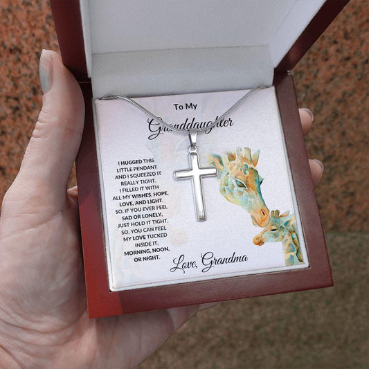 Granddaughter Gift Engraved Cross Pendant Necklace Love Grandma Birthday Special Occasion