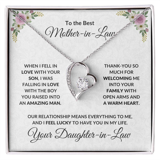Gift for Mother-in-law from Daughter-in-law Forever Love Heart Necklace with Message Card and Gift Box