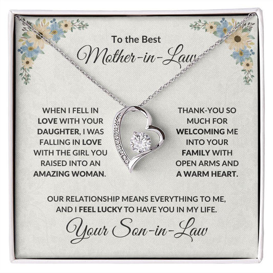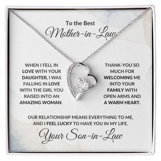 To My Mother-in-law from Son-in-law Forever Love Heart Pendant Necklace Personalized Message Card