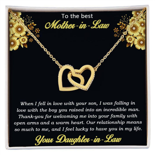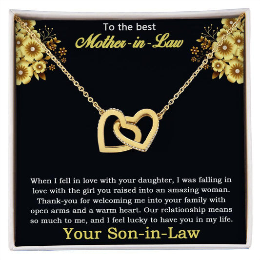 Gift for Mother-in-law from Son-in-Law Gold and Silver Interlocking Heart Pendant Necklace