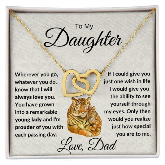 To My Daughter - Give You One Wish - Interlocking Hearts Necklace with Tiger Message Card Gift Box