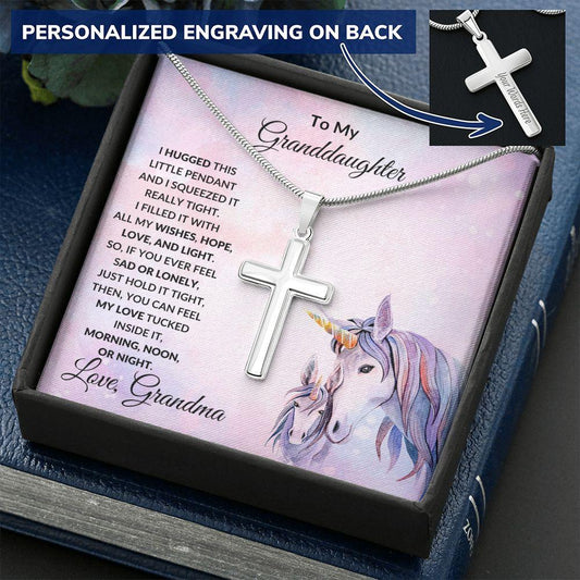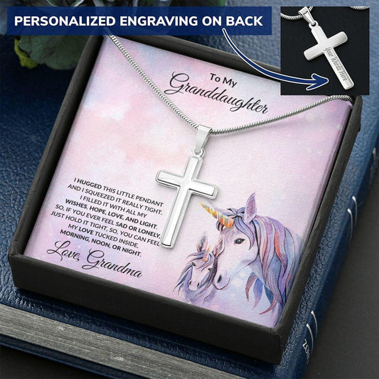 Gift for Granddaughter Personalized Cross Necklace Unicorn Message Card