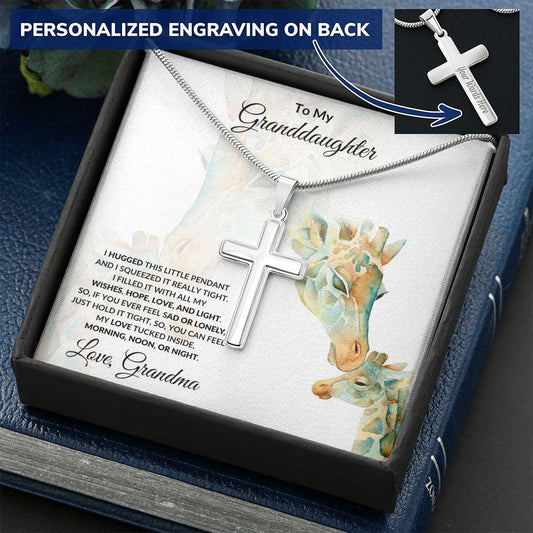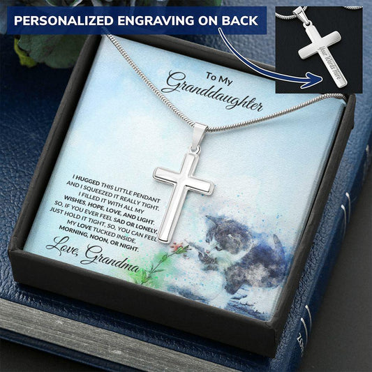 To My Granddaughter Personalized Engraved Cross Pendant Necklace