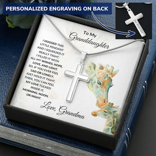 Granddaughter Gift Engraved Cross Pendant Necklace