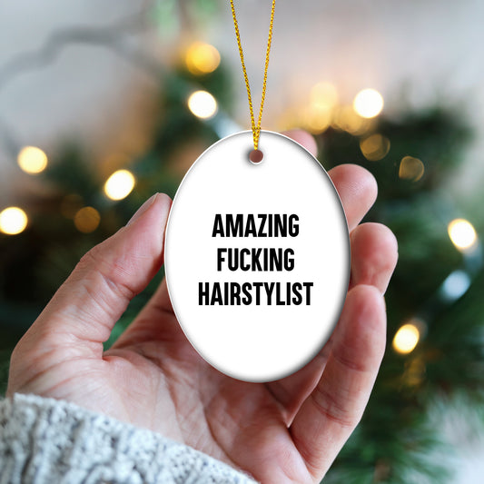 Funny Hairstylist Gifts from Friends, Women, Family - Amazing F--king Hairstylist Oval Ornament, Christmas Unique Presents for Hairstylist