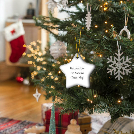 Musician Gifts from Friends - 'Because I Am The Musician. That's Why.' Star Ornament for Christmas - Gifts for Musician