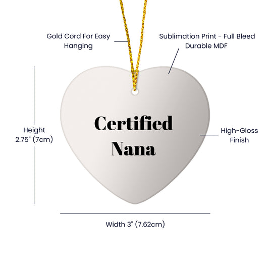 Funny Nana Gifts from Men to Nana, Heart Ornament for Nana, 'Certified Nana' Holiday Decoration, Christmas Unique Gifts for Nanas