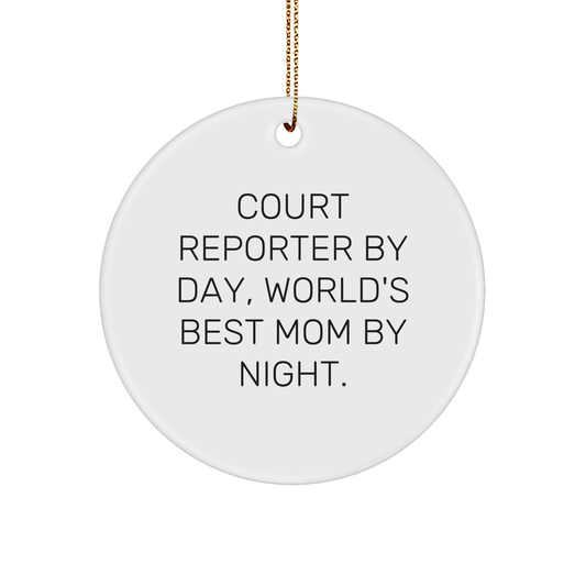 Court Reporter Gifts from Friends for Christmas, 'Court Reporter By Day, World's Best Mom By Night.' Circle Ornament