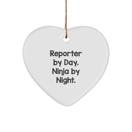 Reporter Gifts by Day, Heart Ornament Ninja by Night, Funny Christmas Unique Gifts from Men to Reporter Friends