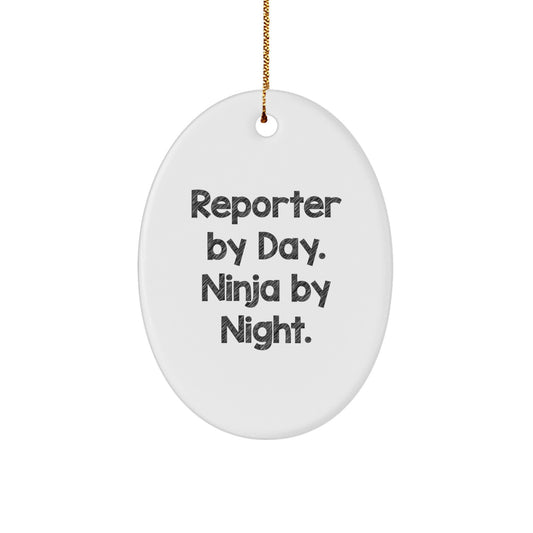 Reporter Gifts by Day, Ninja Gifts by Night, Oval Ornament for Christmas, Funny Quote, Gifts from Friends to Reporter
