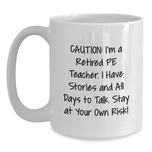 Funny PE Teacher Gifts for Men, Women, and Friends - Caution: I'm A Retired Pe Teacher Mug, White Coffee Mug, Christmas Unique Gifts from Family, Coworkers