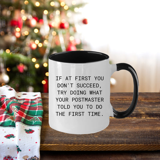 Funny Postmaster Gifts from Men Christmas Unique Mugs for Postmaster, If At First You Don't Succeed, Try Doing What Your Postmaster Told You To Do The First Time. Black Coffee MugRegular price From $24.95 USDRegular priceUnit price / per$49.95 USDSale price From $24.95 USDSale