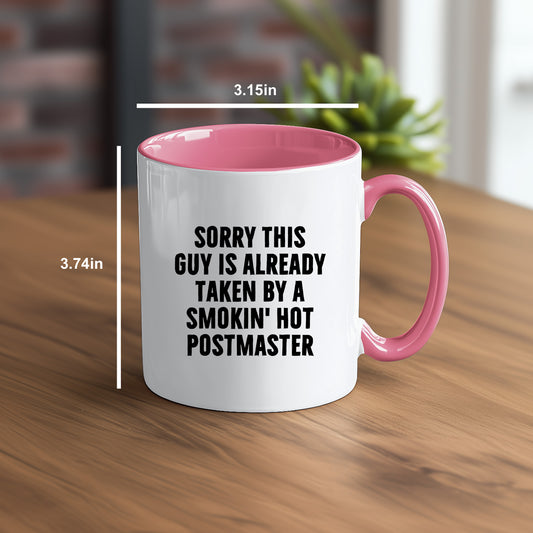 Funny Postmaster Gifts for Men - Sorry This Guy Is Already Taken By A Smokin' Hot Postmaster Two Tone Coffee Mug, Gifts from Friends, Family, or Coworkers for Father's Day