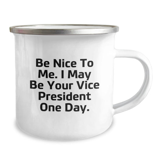 Funny Vice President Gifts, Be Nice To Me. I May Be Your Vice President One Day. - 12 oz Camping Mug, Perfect Birthday Unique Gift for Coworkers, Friends, Family, or Men