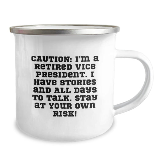Vice President Gifts from Family - Funny Camping Mug, 'Caution: I'm A Retired Vice President...' - Unique Graduation Gift for Men, Women, or Friends