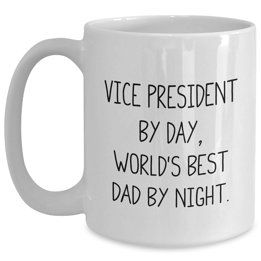 Vice President By Day, World's Best Dad By Night Funny Two Tone Coffee Mug Gifts from Family, Gifts for Vice President, Unique Father's Day