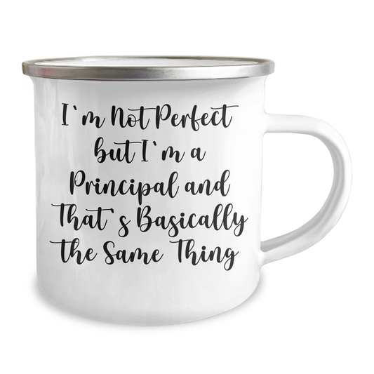 Funny Principal Gifts - 'I'm Not Perfect But I'm A Principal And That's Basically The Same Thing' Enamel Camping Mug for Graduation, Gifts from Friends to Principal, Perfect for Principal's Office