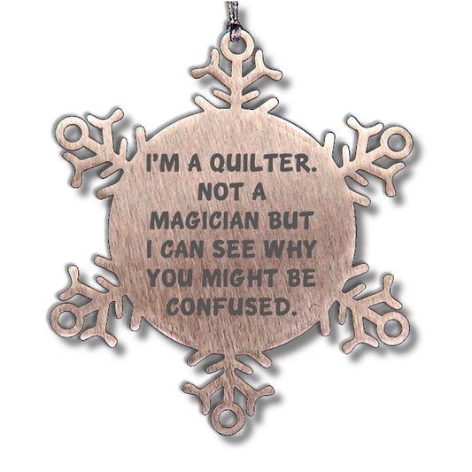 Funny Quilter Snowflake Ornament – “Not a Magician” Quote – Stainless Steel Holiday Decor for Quilters & Sewing Lovers
