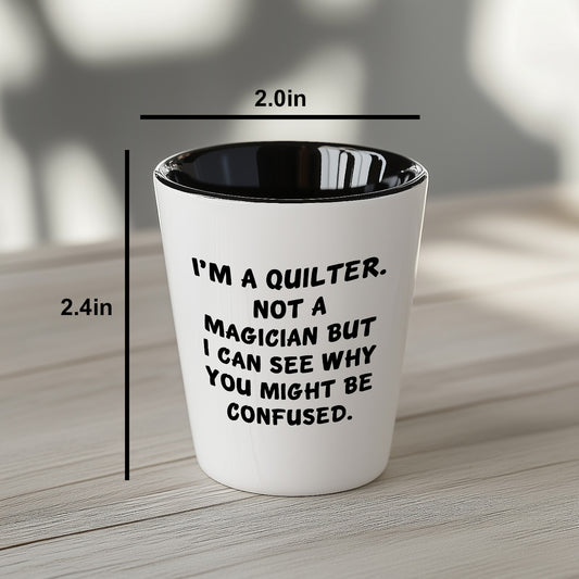 Quilter Gift – “I'm a Quilter, Not a Magician, But I Can See Why You Might Be Confused” Funny Shot Glass, 1.5oz Ceramic, White Color,
