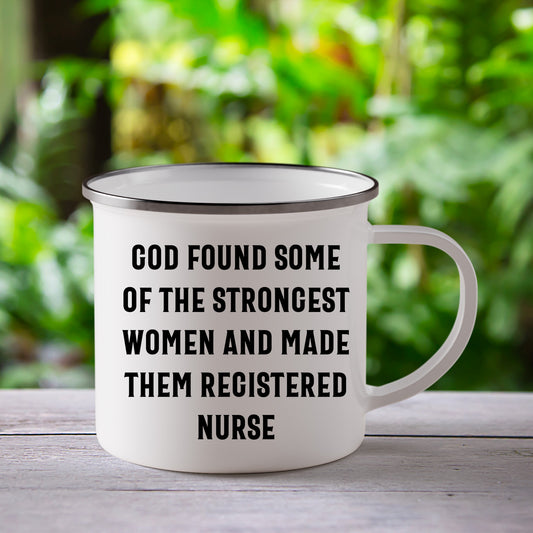 Registered Nurse Camping Mug - 'God Found Some Of The Strongest Women And Made Them Registered Nurse' - Stainless Steel Enamel Mug