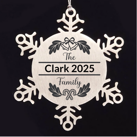 Personalized Family Name Laser Engraved Stainless Steel Snowflake Tree Ornament Santa's Mail