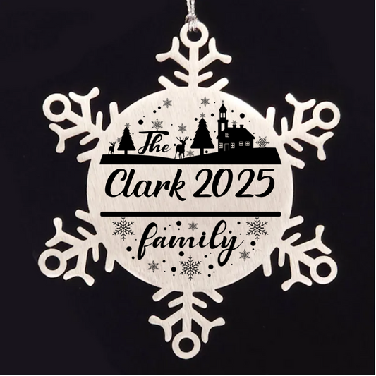 Personalized Family Name Laser Engraved Stainless Steel Snowflake Tree Ornament