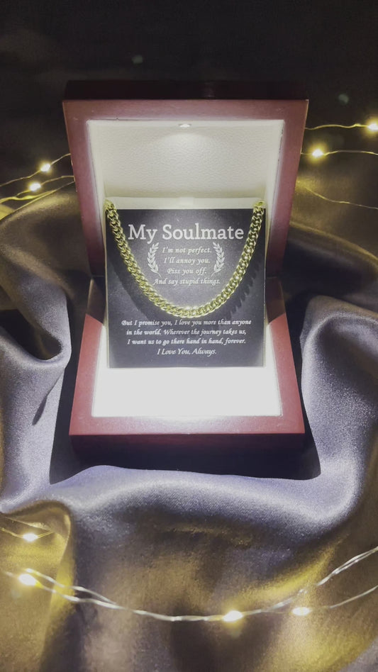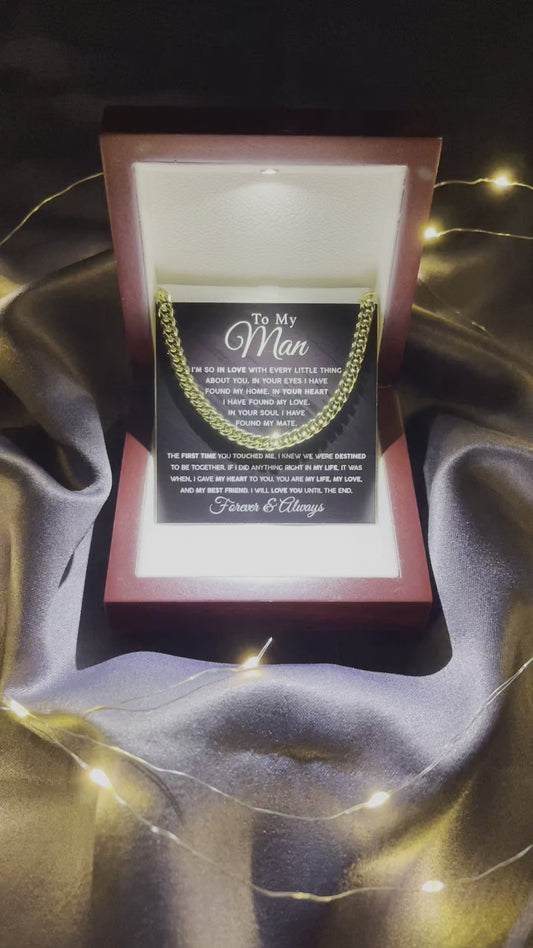 To My Man - In you Soul, I have found my Mate - Cuban Chain Link Necklace with Message Card