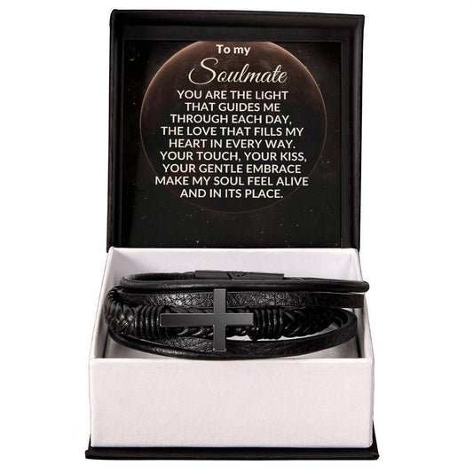 Soulmate - You are the Light That Guides Me - Men's Cross Leather Bracelet