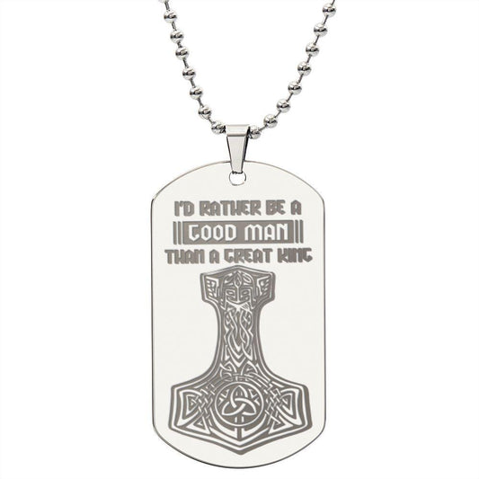 Mjolnir Viking Engraved Dog Tag Necklace I'd Rather Be A Good Man Than A Great King