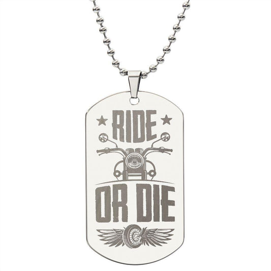 Gift for Biker Ride Or Die Engraved Dog Tag Necklace