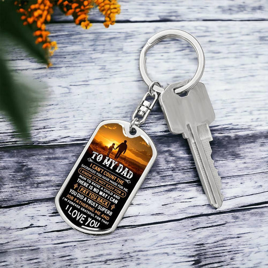 To My Dad I Know It Is Not Easy Graphic Engraved Dog Tag Keychain