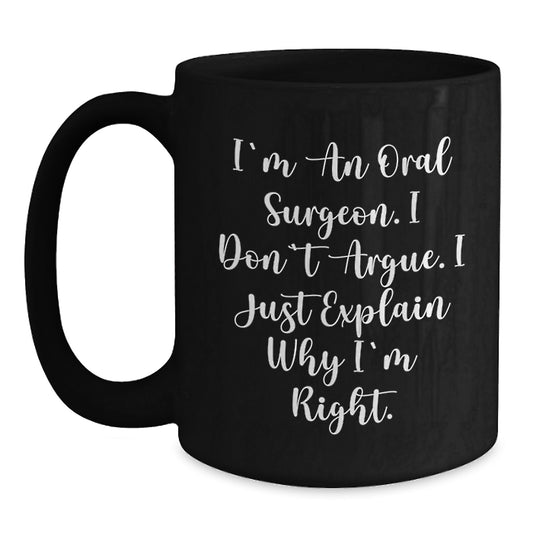 Funny Oral Surgeon Gifts from Men to Friends, Unique Christmas Unique Gifts for Oral Surgeon, Two Tone Coffee Mug with I'm An Oral Surgeon. I Don't Argue. I Just Explain Why I'm Right.