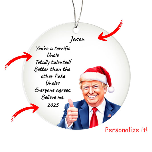 Personalized Trump Christmas Acrylic Ornament – Funny Santa Thumbs-Up Holiday Gift – Custom Name & Year Keepsake