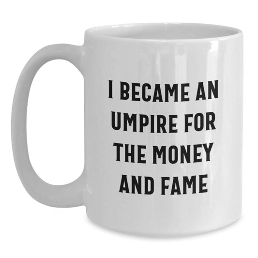 Umpire Gifts for Men, Funny White Coffee Mug, Christmas Unique Presents from Friends, I Became An Umpire For The Money And Fame Humor Mug
