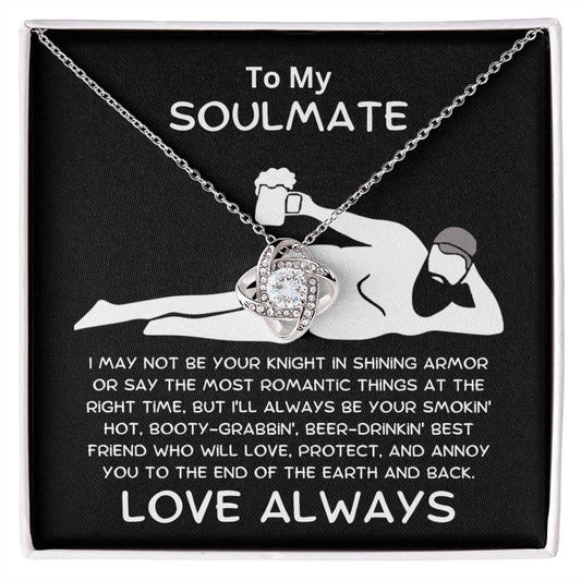 To My Soulmate - Love Knot Necklace with Funny Message Card and Gift Box