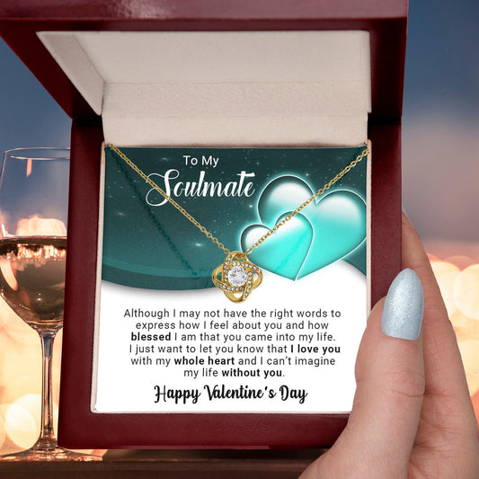 To My Soulmate I Love You With My Whole Heart Valentine Love Knot Necklace