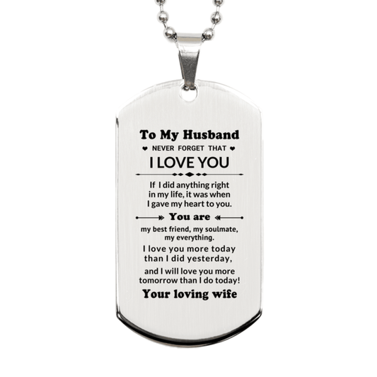 To My Husband You Are My Best Friend, My Soulmate, My Everything Engraved Silver Dog Tag Necklace Anniversary Birthday Valentine Gift