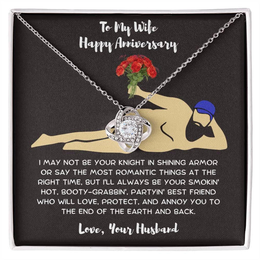Wife Anniversary - Birthday - Personalized Knight in Shining Armor Love Knot Necklace and Message Card