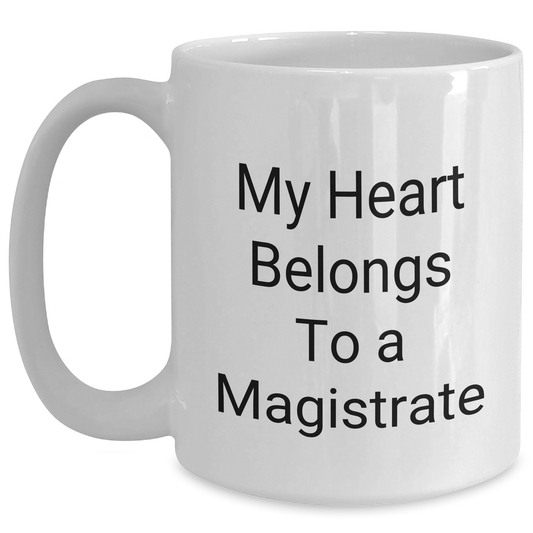 Funny Magistrate Gifts - My Heart Belongs To A Magistrate White Coffee Mug for Mother's Day, Gifts from Friends, Family, or Coworkers to Magistrate