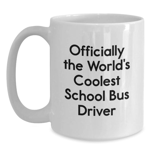 Funny School Bus Driver Gifts from Friends for Men - Officially The Coolest White Coffee Mug, 11oz or 15oz Capacity, Graduation Unique Gifts