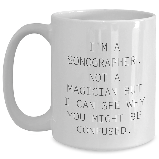 Sonographer Humor White Coffee Mug, Funny Gift for Sonographer Friends and Coworkers, Birthday Unique Gifts from Family