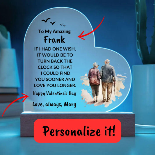 Gift for Husband Love You Longer Personalized Anniversary Birthday Valentine's Day Acrylic Heart Plaque