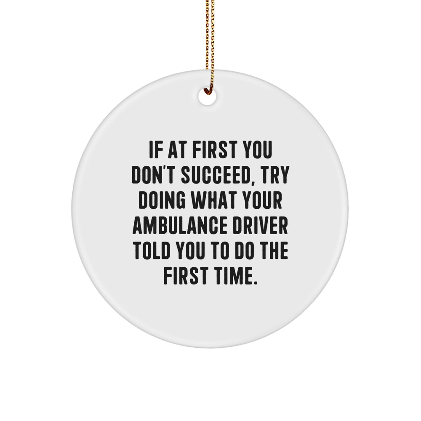 - The quote 'If At First You Don't Succeed, Try Doing What Your Ambulance Driver Told You To Do The First Time.' is a great way to add some humor to your holiday decor. It's the ideal gift for Ambulance Driver enthusiasts or anyone who loves a good laugh.